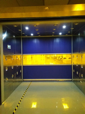 快速卷簾門貨淋室為起到隔絕室內(nèi)外空氣,雙門具有電 子互聯(lián)鎖功能,起到緩沖、氣閘及吹淋的作用。